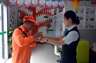 “太热了,这杯冰水喝下去凉快多了!”24日上午,环卫工人余根水走进新北路邮政储蓄网点,他一边拿毛巾擦汗一边喝水歇脚。“很实在,很贴心!往后喝水就方便了,这下干劲更足啦!”说起新设的休息点,余根水十分激动。