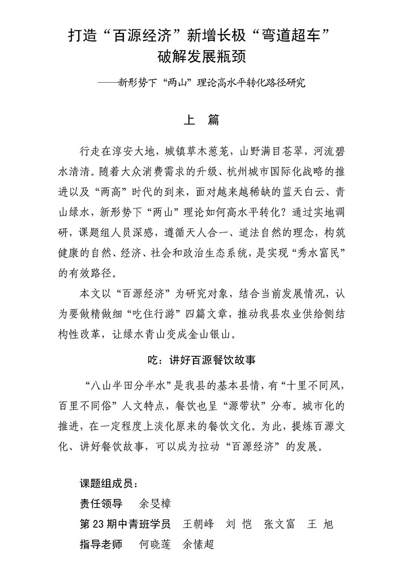 打造“百源经济”新增长极 “弯道超车”破解发展瓶颈——新形势下“两山”理论高水平转化路径研究