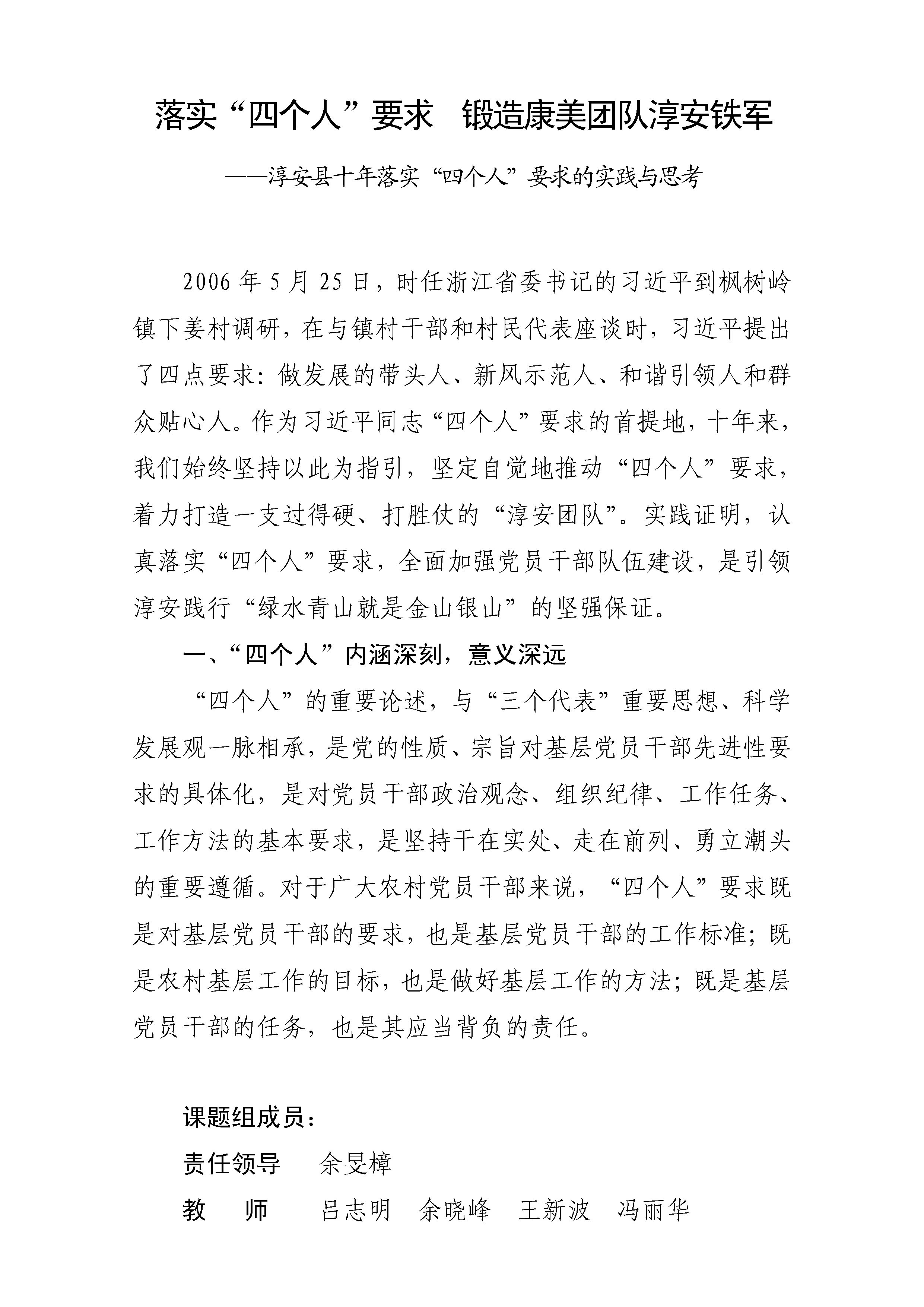 落实“四个人”要求 锻造康美团队淳安铁军——淳安县十年落实“四个人”要求的实践与思考