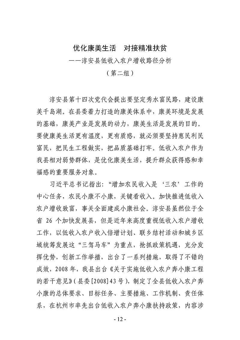 优化康美生活 对接精准扶贫——淳安县低收入农户增收路径分析