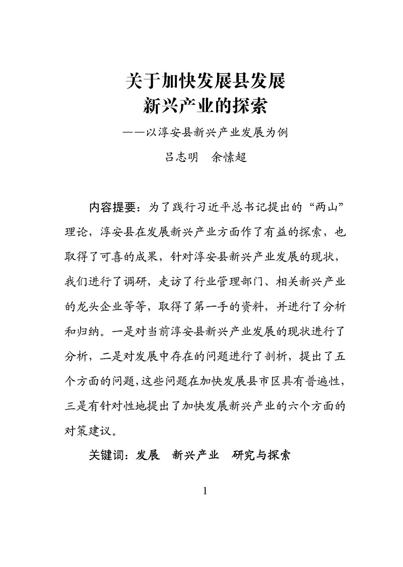 关于加快发展县发展新兴产业的探索——以淳安县新兴产业发展为例