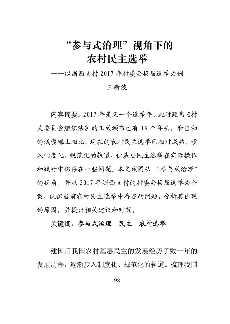 “参与式治理”视角下的农村民主选举——以浙西A村2017年村委会换届选举为例
