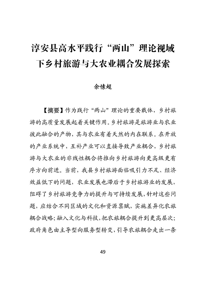 淳安县高水平践行“两山”理论视域下乡村旅游与大农业耦合发展探索