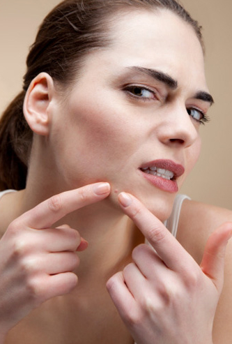 发际痘VS毛孔——发际长痘和毛孔有关。因为卸妆没卸干净,或者清洁时忽略了这个小细节,造成角质太厚,毛孔堵塞,容易在发际或眉间形成细小痘痘。