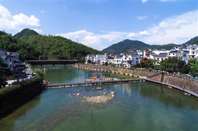 短短几年后,下姜村豁然开朗的山坳里,宽阔的溪水沿着长长的埠头潺潺而流,烟雨蒙蒙的溪面上,鸭子欢快嬉戏,白墙黑瓦的民房掩映在绿树丛中……