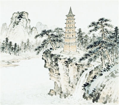 琅琯塔耸立于琅琯岭顶的悬崖之上,气势恢宏。