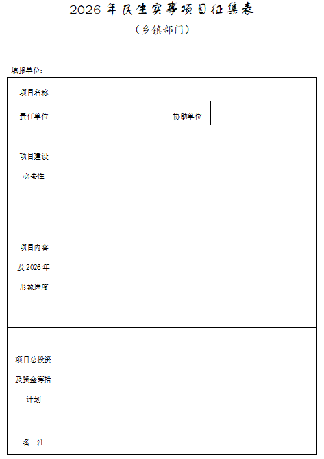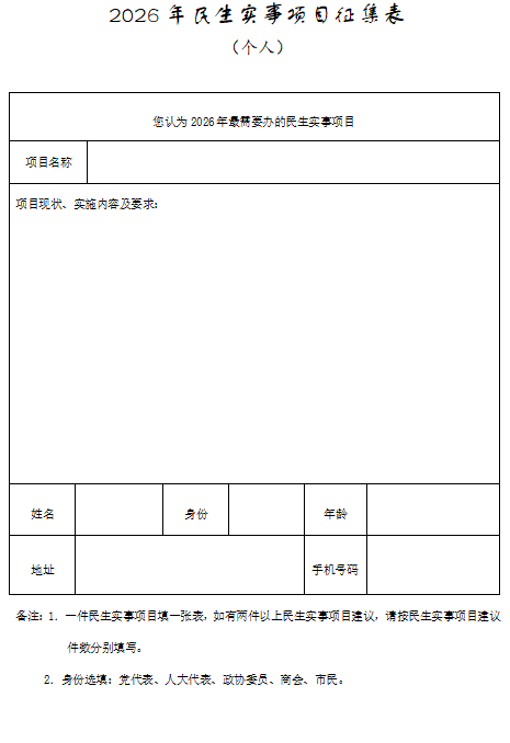 为有效解决人民群众最关心、最直接、最现实的热点、难点问题,提升民生实事项目决策的民主化、科学化和法治水平,让每一项实事更加贴近民生、顺应民意、切合民需。经研究,决定向社会公开征集2026年民生实事项目。现就有关事项公告如下: