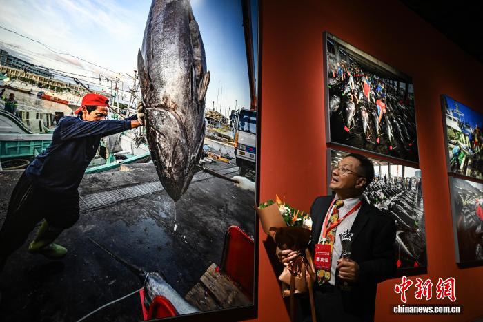 10月31日,台湾获奖者赵令级讲述照片创作过程。当日,第三届海峡两岸中华摄影奖暨第六届海峡两岸影像文化周在浙江杭州启幕,本次活动以"打造摄影的中华语境,传播摄影的中华语言"为宗旨,250余位两岸摄影界代表汇聚一堂,在光影中共赏中华之美、共叙血脉亲情。中新社记者 王刚 摄
