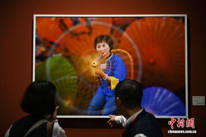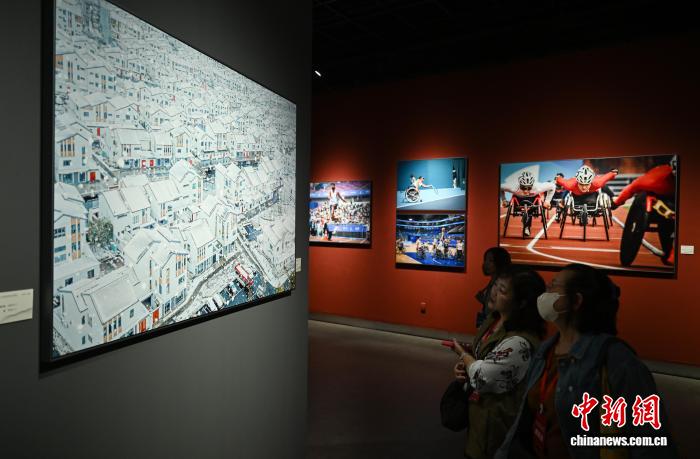 10月31日,多幅摄影作品吸引参观者。当日,第三届海峡两岸中华摄影奖暨第六届海峡两岸影像文化周在浙江杭州启幕,本次活动以"打造摄影的中华语境,传播摄影的中华语言"为宗旨,250余位两岸摄影界代表汇聚一堂,在光影中共赏中华之美、共叙血脉亲情。中新社记者 王刚 摄