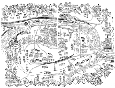 挥扬《渭川姜氏宗谱》中乾隆年间的横沿一带村图