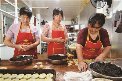 中秋佳节临近,位于安阳乡集镇上的龙凤糕点店内,师傅们正按照打碎、拌料、出模、烘烤、包装等工序,有条不紊地制作出一个个色泽鲜亮、美味可口的月饼,前来制作加工和购买月饼的市民络绎不绝。