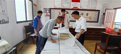 近日,中洲镇札溪传承四百余年《吴氏家宝》长卷之题款卷修复完毕。