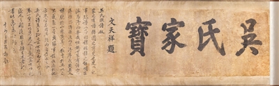 所谓的“吴氏家宝”是一部由11幅名家墨宝、圣旨等拼凑而成,大约有十余米长的长卷,卷首便是南宋民族英雄“文天祥”为吴氏家谱题写的“吴氏家宝”四个大字。接着便是“朱熹”题的“水木本源”四个字,以及北宋“王安石”为吴氏族谱题写的一段“序”,其中还有神龙二年(公元706年)三月给监察御史吴少微的圣旨,表扬其政绩,由此可见唐朝朝廷对进士吴少微的重视,最后还有吴氏家族的世袭族谱。