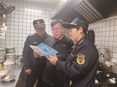 “老板,年底店里人流量多,安全隐患也多,我们要注重学习安全知识,安全问题可不能马虎……”县综合行政执法局青溪新城中队执法队员方芳琴敲开了经营户的门,为他们普及安全常识,提醒他们保持警惕,定期开展自查,及时消除隐患。
