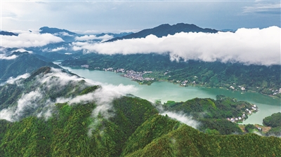 近日,雨后的左口乡塘边村宁静而空灵,宛如一幅水墨丹青。群山连绵,植被苍翠欲滴,洁白的云雾如轻纱般缠绕峰峦之间;碧绿的湖水与蜿蜒河流静静流淌,倒映着山色与云影;白墙黑瓦的民居错落有致,梯田层叠,道路蜿蜒,勾勒出人与自然和谐共生的美丽画卷。