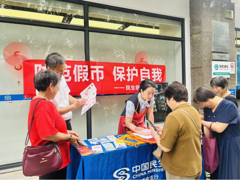 为进一步扩大宣传覆盖面,民生银行淳安支行还在银行门口设立户外宣传摊位,悬挂横幅、发放手册,面对面为市民讲解假币常见种类、识别技巧及误收假币后的正确处理方式。活动现场气氛热烈,不少市民驻足咨询,主动领取宣传资料,与工作人员互动交流,取得了良好的社会反响。