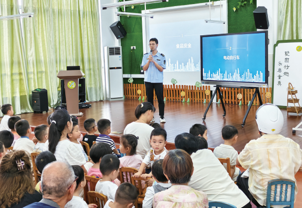 为让家长孩子们度过一个快乐安全的中秋国庆假期,近日,县市监局大市市管所工作人员深入大墅中心幼儿园,开展了一次通俗易懂的安全知识科普活动,内容包括食品安全,灭火器、自行车使用安全,药品、保健品与普通食品的区别等。