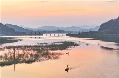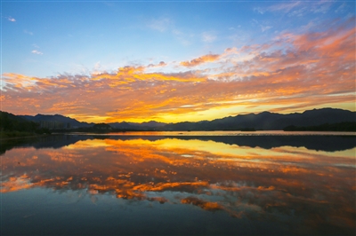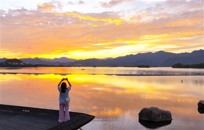 当一片红霞泛出天际,满湖碧水仿佛从“半江瑟瑟半江红”的唐诗中走出来一样。千岛湖秋天的早晨,最美是那漫天的朝阳。或金色,或粉色,或霞色,这些斑斓的色彩落染到湖上、山上,一切都美得如诗如画。