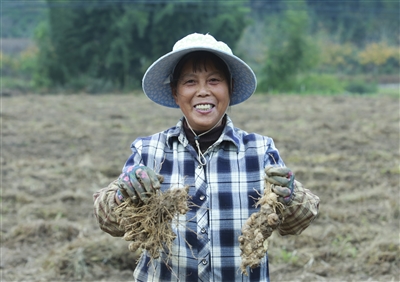 时下,在临岐镇右源村黄精种植基地,村民们趁着晴好天气,在田里采挖中药材黄精,田间弥漫着浓郁的药香,一块块色泽黄润的黄精破土而出,成为百姓增收致富的“金疙瘩”。