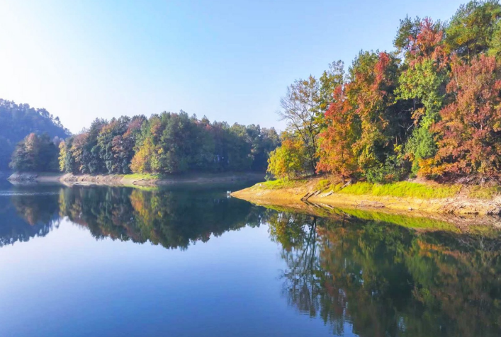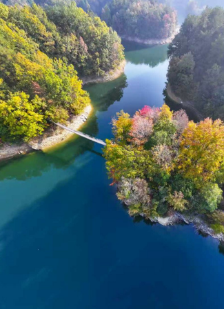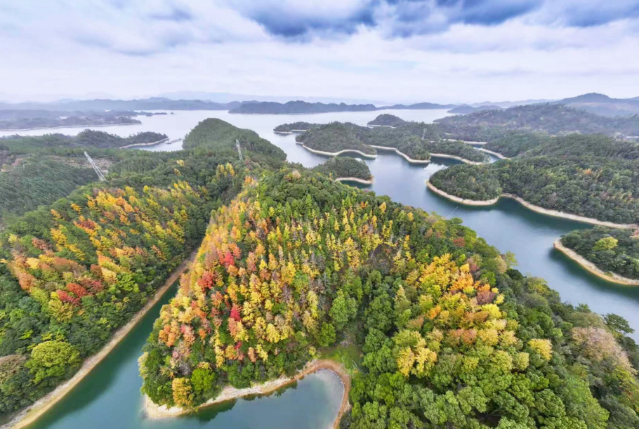 当季节进入深秋初冬时,一早一晚的冷暖,让千岛湖水云清澈、层林尽染,从山峦到田野,从岛屿到城市,到处都是色彩斑驳的秋色画卷,整个千岛湖犹如一块镶嵌在巨幅油画里的明镜。