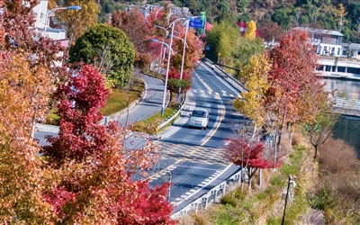 初冬时节,淳杨线两侧红枫似火,一簇簇、一层层将公路染透,与山间斑斓林海、澄澈的湖水相映成趣,车辆行驶在这片“枫”景中,如同穿行在一幅徐徐展开的暖色长卷里。