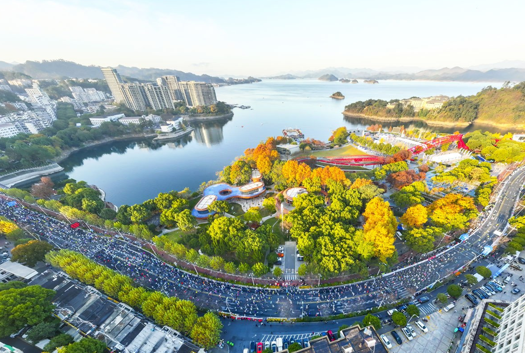 11月30日,2025千岛湖马拉松比赛在秀水广场鸣枪开跑。来自全国各地的1.2万余名跑者齐聚千岛湖畔,沿亚运同款赛道展开角逐,在碧水青山间书写奔跑故事。本届赛事以“绝美环湖赛道”为核心特色,路线设计兼顾城市烟火与自然秘境,通过“体育+旅游”的模式,让更多人在奔跑中领略淳安的生态之美与人文魅力。