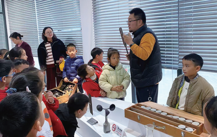 在气象局工作人员的引领下,学生们依次参观了人工增雨设备、气象观测场、科普展厅和气象预报平台。在观测场内,百叶箱、风速仪、雨量收集器等专业设备激起了同学们的浓厚兴趣;在预报大厅里,实时变动的卫星云图和数据流,生动展现了气象工作的科技内涵。活动通过现场讲解、实地观察和互动问答等形式,让孩子们在体验中学习气象知识。