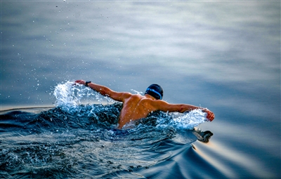 小寒时节,千岛湖湖面澄澈如镜。冬泳爱好者纵身跃入水中,劈波斩浪、奋勇向前,矫健的身姿划破碧波,尽显昂扬向上的运动活力。