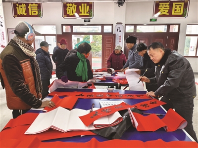 近日,县老干部活动中心组织10余位老干部书画协会的书画老师,赴威坪镇青联村开展“迎新春送祝福”志愿活动。活动现场,书画老师们将新春祝福凝于笔端,一幅幅寓意吉祥的春联、大红福字跃然纸上;村民们围拢挑选、喜笑颜开,浓浓的墨香与年味交织。