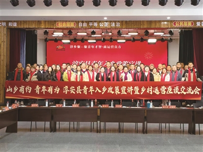 青年是乡村振兴的重要力量,人才是乡村发展的关键支撑。近日,我县在富文乡青田村文化礼堂举办“淳乡聚——聚青年才智·商运营良方”青年入乡系列政策宣讲暨乡村运营座谈交流会。