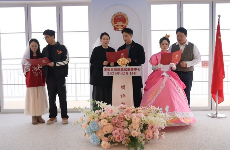 为保障高峰服务,登记中心精心推出非遗手作、婚姻小课堂等特色服务,让仪式更有温度、更具内涵。县民政局党委书记、局长钱江锋表示,新人乘渡船、赏湖景,在青山绿水间许下誓言,既是一次浪漫体验,也是对婚事新办、简办的生动践行,倡导“不拼彩礼厚度,拼山水仪式感”的文明婚俗新风。
