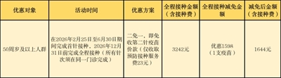 惠民对象:不限户籍,年满50周岁且无接种禁忌者。