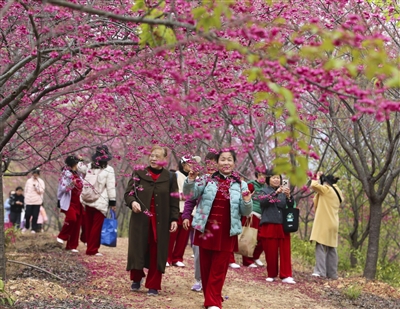 春天最热闹的事情,就是开花,各种各样的花儿会陆续热烈绽放。当春天来到千岛湖畔时,湖畔的梅花当然是东风第一枝;红梅花儿闪耀枝头的时候,漫山遍野的早樱,也按捺不住对春风的向往,纷纷绽开,迎接这个美好而温暖的春天。这些红的、粉的花儿,为千岛湖的春天涂抹上第一层明亮的色彩。