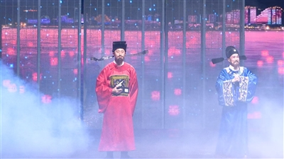 夜幕降临,千岛湖水之灵剧院内灯火璀璨,座无虚席。随着灯光渐暗,一场以水为媒、以史为脉的视听盛宴缓缓拉开帷幕。演出共分五幕,串联起淳安千年文脉与时代变迁。《江河古道》诉说新安江商旅繁华与浪漫情愫;《青溪雄风》展现淳安儿女刚毅无畏的精神风骨;《文献名邦》跨越时空传递清廉为官的为政理念;《山河壮举》深情再现30万移民舍家为国的奉献壮举;《水秀天下》则描绘出如今千岛湖城水相依、百姓安乐的幸福图景。