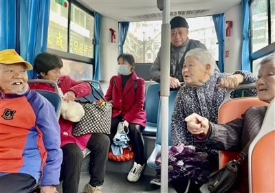 88岁的王长女提起这辆巴士,脸上满是笑意:“以前从家走到老年食堂要40分钟,腿脚不好,走一趟就累得喘。现在好了,家门口走5分钟就能上车,坐着车一会儿就到,真是帮了我们大忙。”她的老闺蜜、86岁的钱香花也说道:“以前出门不方便,我俩见面都少,现在天天能约着坐公交去食堂,就像年轻时一样亲近。”