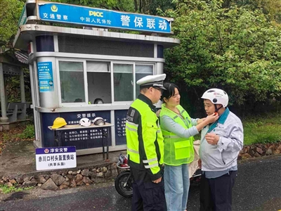 现场,执勤人员对过往骑乘人员逐一检查,耐心讲解不戴头盔的安全隐患,劝导未佩戴或佩戴破损头盔的群众规范佩戴。针对部分群众“无盔可用”“旧盔凑合”的困难,警保双方设立头盔置换站,群众可凭破损旧头盔免费置换新头盔,有需求者还可申领应急头盔,执勤人员同步指导正确佩戴方法。